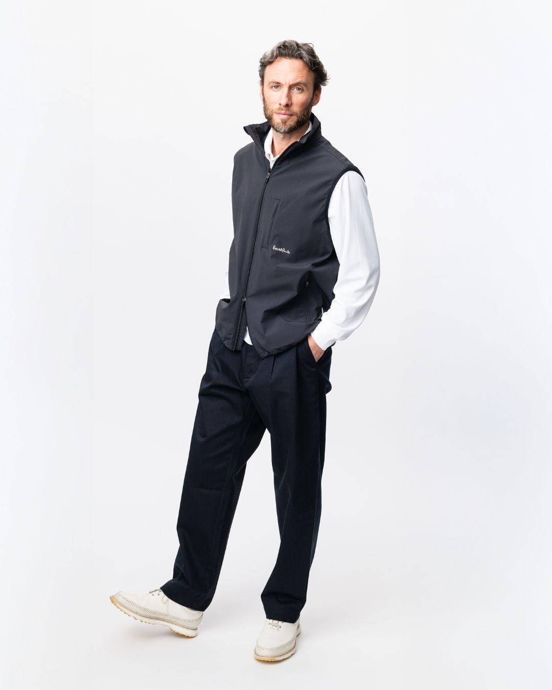 Designed for changing conditions on and off the course, this technical vest combines stretch performance with a sharp Scandinavian silhouette — making it the ideal layer from cool morning tee times to everyday wear in the city.